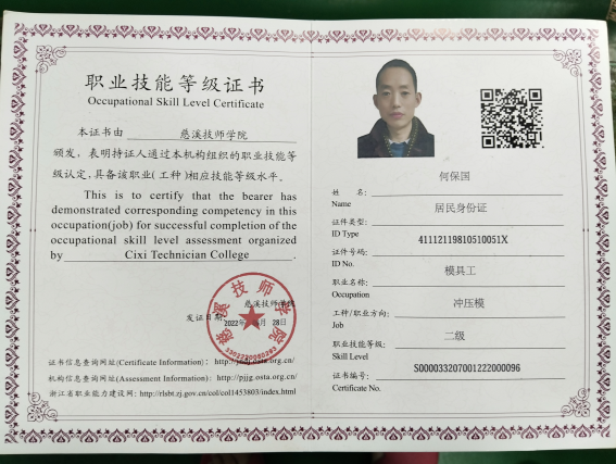 在人才競爭日益激烈的當下,國家對技能人才的重視程度不斷提升,各類技能補貼政策也相繼落地。近日,我司模具部五金模技工何保國就切實享受到了這一紅利——憑借剛取得的模具工技師證書,成功申領到1萬元一次性技能補貼,成為公司技能提升的“先行者”和“受益者”。
