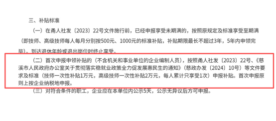 證書到手后,公司行政部門第一時間行動起來。依據寧波市人力資源和社會保障局關于提升人才技能補貼的相關要求,以及《慈溪市人民政府辦公室關于貫徹落實穩就業政策全力促發展惠民生的通知》(慈政辦發〔2024〕10號)文件中明確的標準——技師可享受1萬元一次性補貼、高級技師可享受2萬元一次性補貼,行政同事積極協助何保國整理申請材料,精準核對文件要求,高效完成了補貼申請的遞交工作。