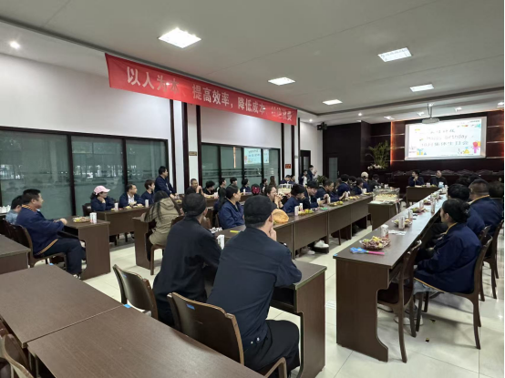 隨著歡快的音樂響起,生日會(huì)正式拉開帷幕。常務(wù)副總黃總攜手各位領(lǐng)導(dǎo)為大家送上了真摯的生日祝福,溫暖的話語讓現(xiàn)場(chǎng)氛圍愈發(fā)濃厚。隨后,大家圍聚在一起,為壽星們共唱生日歌,熟悉的旋律在會(huì)場(chǎng)中回蕩,溫馨的氣息感染著每一個(gè)人。緊接著,壽星們閉上眼睛,默默許下心中美好的愿望,然后一同吹滅蠟燭,將此刻的美好與期許定格。